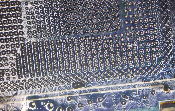 Саму плату полностью зачищаем и подготавливаем к посадке чипов: