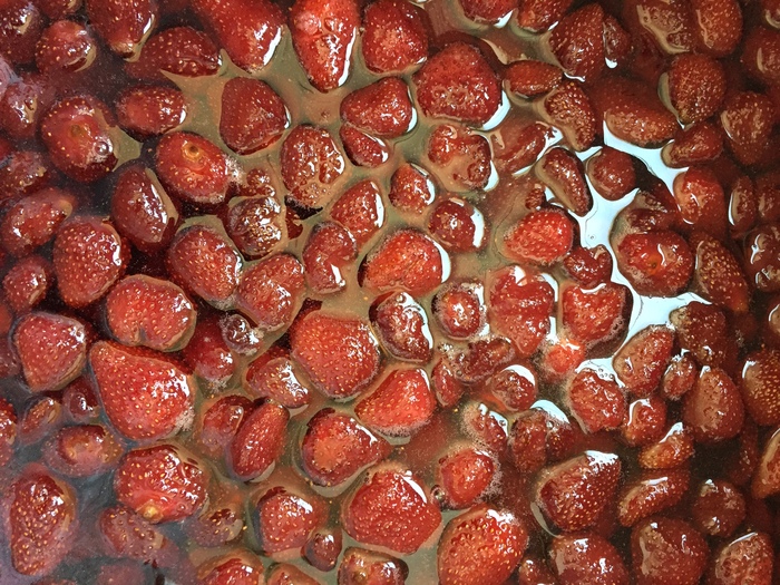 А варить мы будем варенье. Сейчас полным ходом идет клубника, вот ее мы и сварим.