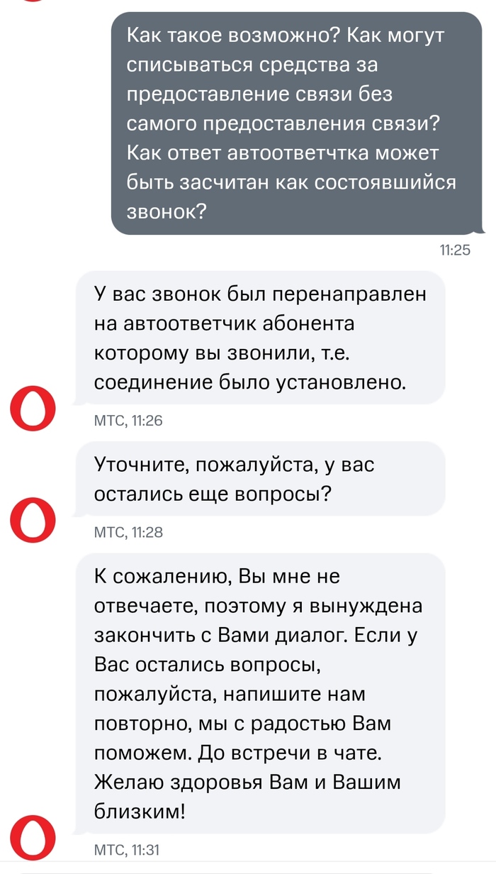 Позвонил с МТС, ответил автоответчик с фразой о том, что абонент недоступен. Но деньги все-равно списались как за совершенный вызов. Оказывается, за радость общения с автоответчиком тоже нужно платить)