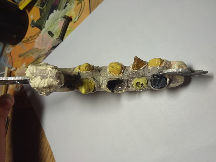 Она, конечно, высохла коряво, лопнула в одном месте, но суперклей помог с этой проблемой). Дальше идет покраска, акрил: