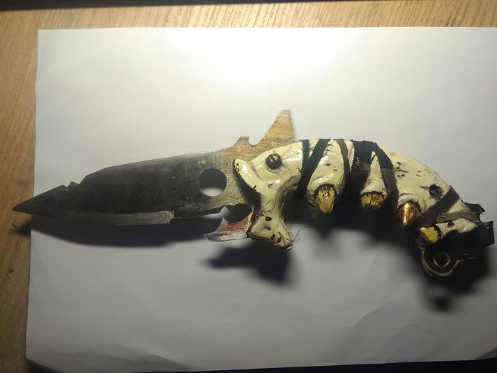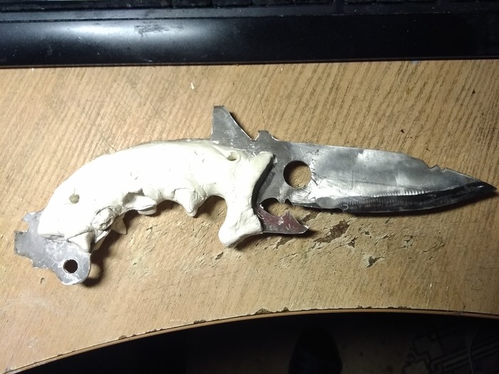 Затем стал думать про рукоять. Сперва хотел выточить из дерева и покрасить. Потом про полимерную глину. Но так как декоративный нож все равно выйдет, остановился на обычной. Да, вы не ослышались, ОБЫЧНАЯ глина как рукоятка для ножа.