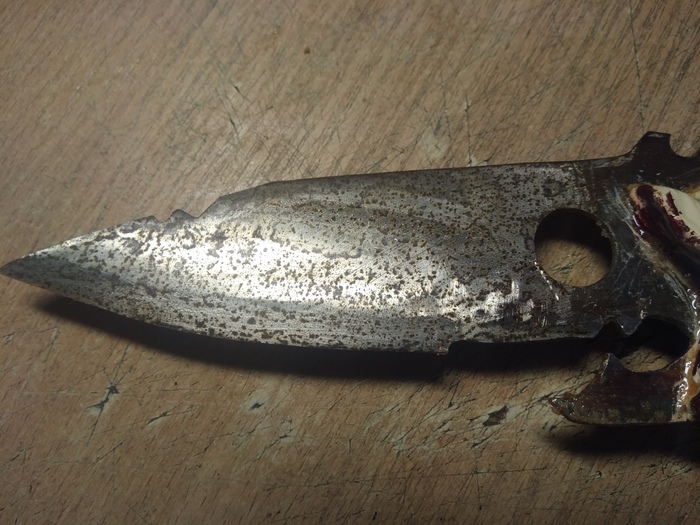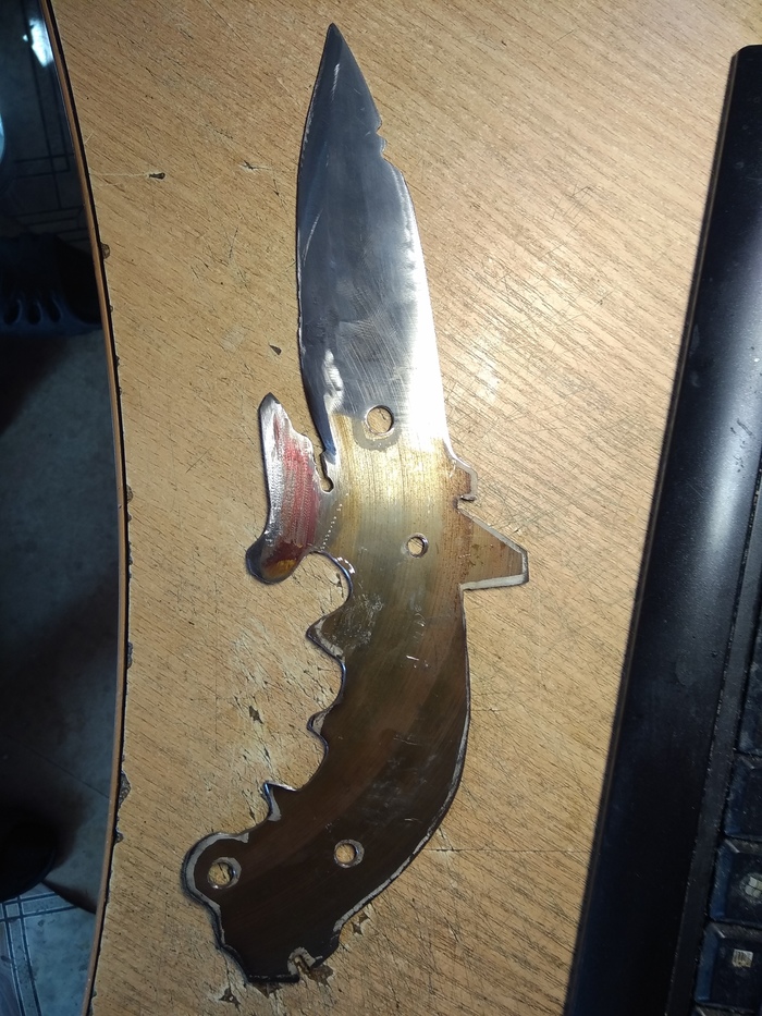 Этакий бандитский нож, ржавый, корявый, но при этом смотрится шикарно. Ну я и принялся творить. Сперва болгаркой вырезал заготовку: