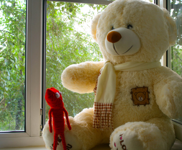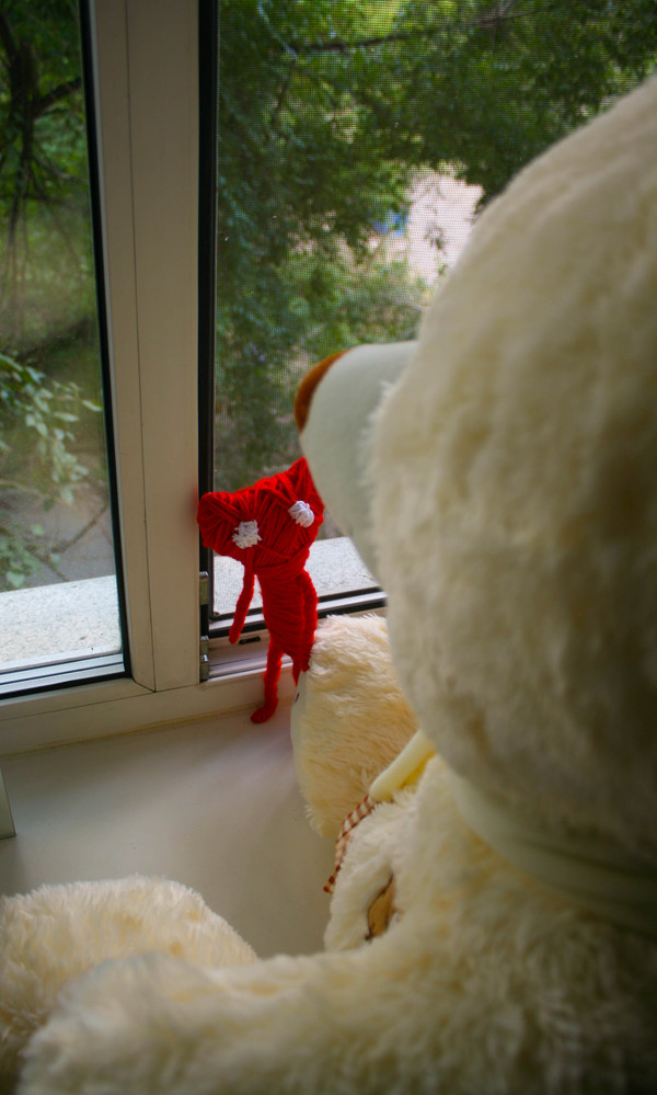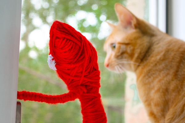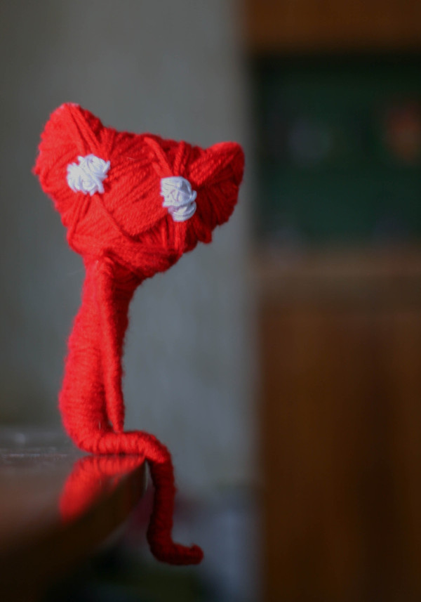Всем привет! Его зовут Ярни, он сделан из медной проволоки и ниток. Ярни очень любит путешествовать, но пока он родился, все время смотрит в окно и изучает моего кота)