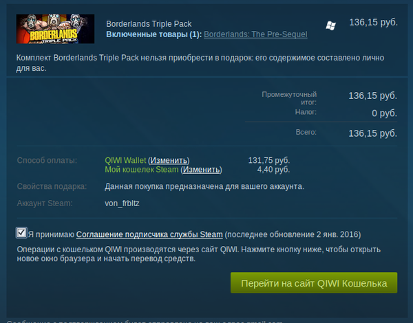 если имея этот комплект попытаться купить предыдущий, то стим отбросит все игры и dlc, которые у вас уже есть и оставит только отсутствующие - в нашем случае это Borderlands: The Pre-Sequel. получится, что в составе покупаемого нами пака будет всего 1 игра, но цена её будет 136 рублей