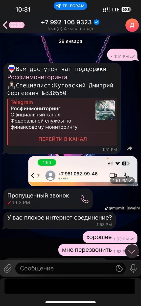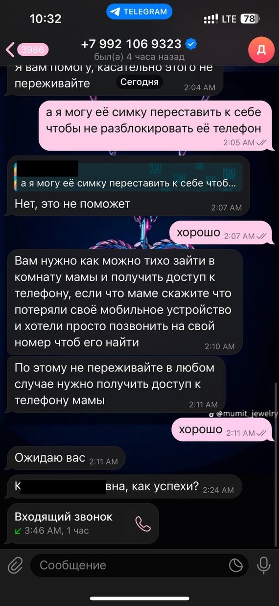 Она перезвонила по одному из этих левых номеров. Дальше пошел стандартный развод. Потом перешли в Телегу.