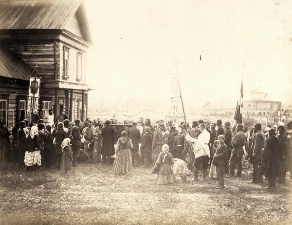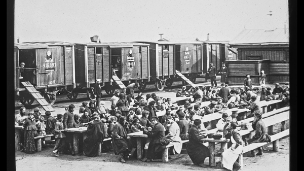 Россия, Тобольск 1897. Добровольце-переселенцев на север кормят бесплатным обедом в пути