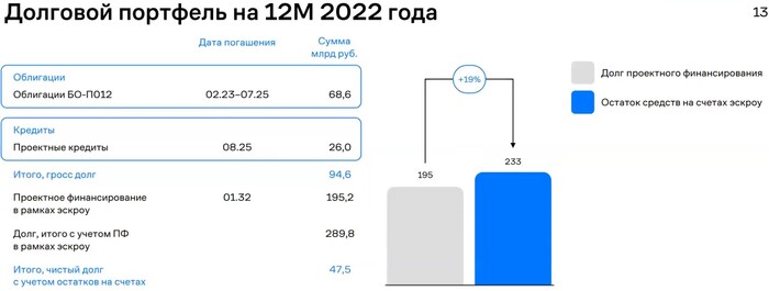 •Чистый корп. долг на конец 2022 года составил 85,3 млрд рублей