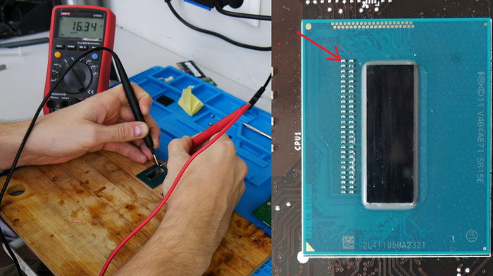 Признаюсь, когда клиент позвонил мне и сказал что жидкий метал попал на плату из под процессора, первое что я представил что он выкатился прям рядом с процом и что то коротнул около него, я морально приготовил клиента что возможно процессор труп, хотя как оказалось все обошлось)