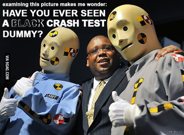 14 vvoron А кстати да 10 лет назад Перевод: Разглядывая это фото задумался: Вы когда-нибудь видели черного манекена для краш-тестов? 9GAG Не мое Черный юмор