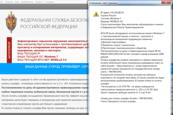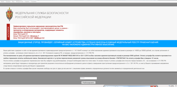 Наложен штраф, без суда и следствия ФСБ антитеррором с просьбой перечислить деньги на государственный мобильник ))))