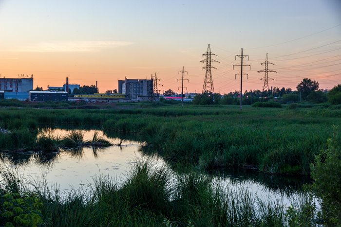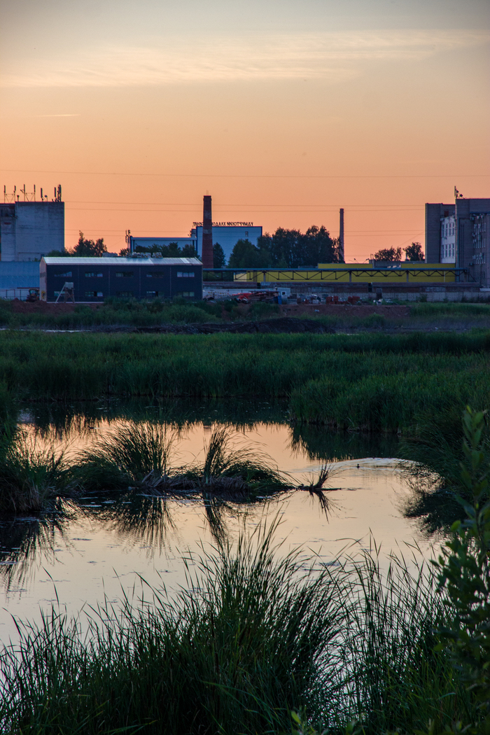 Какое-то очередное болото. НО! На фоне то! Закат! Урбанистика промзоны! В общем, кайф) В такие моменты и раскрывается смысл моего фото-марафона.