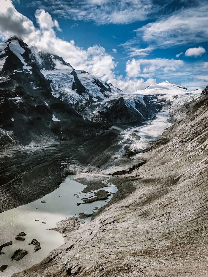 Если немного отклониться от маршрута, дорога приведёт к леднику и лучшему виду на пик Гросглокнер.