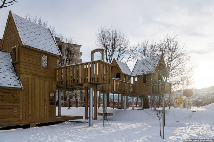 Мне сорок лет, и детские площадки, на которых я играла, заметно отличались от современных. У нас были тарзанки, сетки для лазанья, высоченные горки, шаговые качели, а главное – все они были разные, можно даже сказать уникальные. Нынешние площадки безличны, похожи одна на другую.