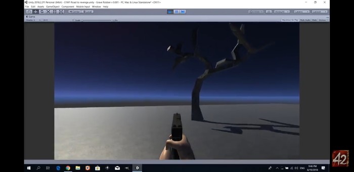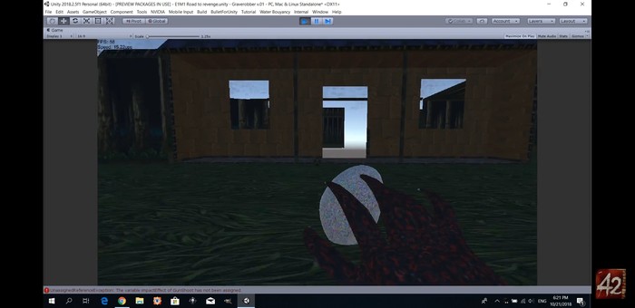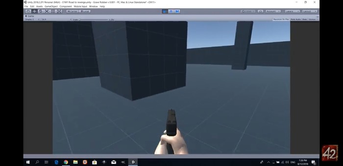 Итак, полазив по туториалам, я решил, что скачав встроенный фпс пакет я сейчас просто все загрейбокшу, и недельки через 2-3 все будет готово. Как вы понимаете, я невероятно ошибался. Поиграв с пакетом, я понял, что там нет абсолютно ничего из того, что мне нужно, но получил практические знания того, как все будет примерно выглядеть в дальнейшей разработке - побегал камерой от первого лица с пистолетиком и понатыкал вокруг кубиков.