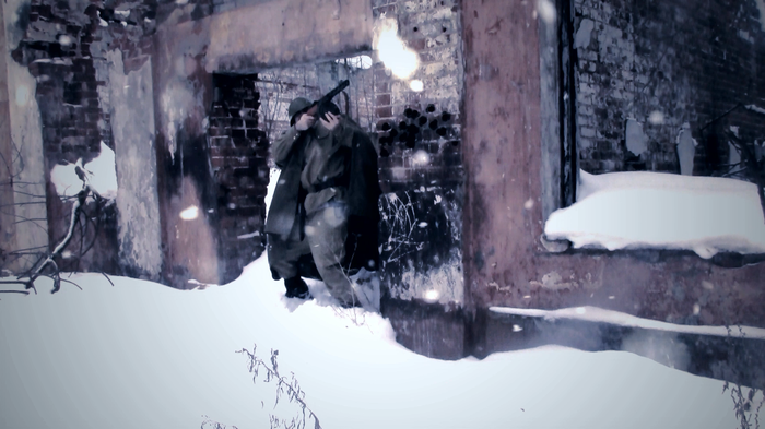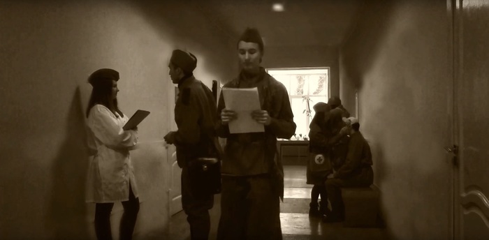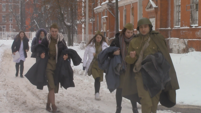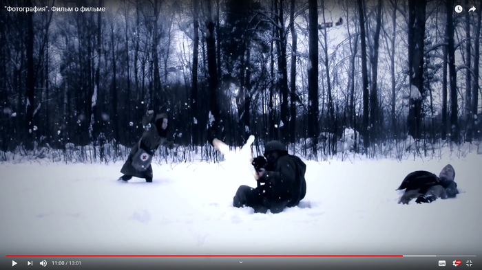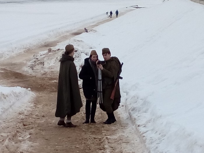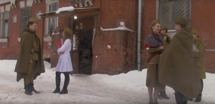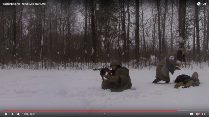 Спустя всего несколько минут одетые бойцы Красной армии с одним пистолетом-пулемётом на семерых (всё по "секретным документам") уже тонкой цепочкой шли к месту съёмок.