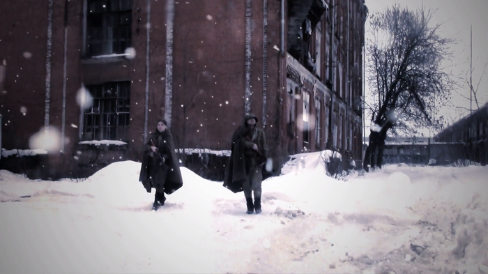 Важной проблемой также стало отсутствие зимней военной формы. Посмотрев на расценки в интернет-магазинах, вариант массовой закупки ватников был отметён сразу. В итоге в голове родился образ красноармейца в гимнастёрке, пилотке или каске и, поверх этого всего, плащ-палатке. Конечно, так как съёмки проходили зимой, под гимнастёркой было термобельё или кофта, но всё равно в свободные моменты большая часть актёров предпочитала проводить время в куртках.