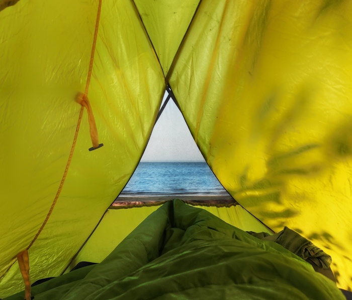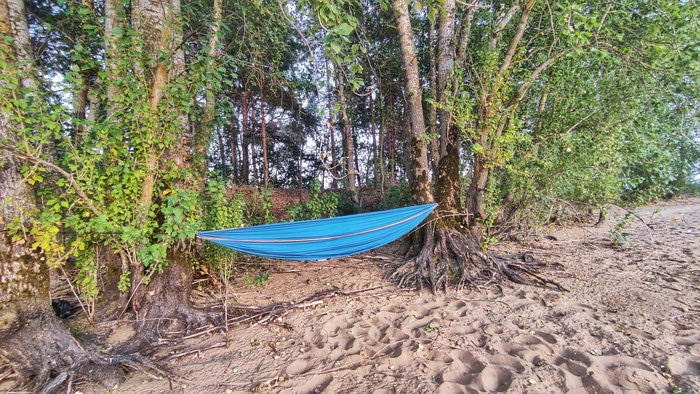 Отличное место. Лес, пляж, вода с достаточной глубиной. Решили ставить лагерь. И конечно, сразу купаться, пока солнце не спряталось.