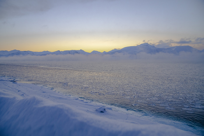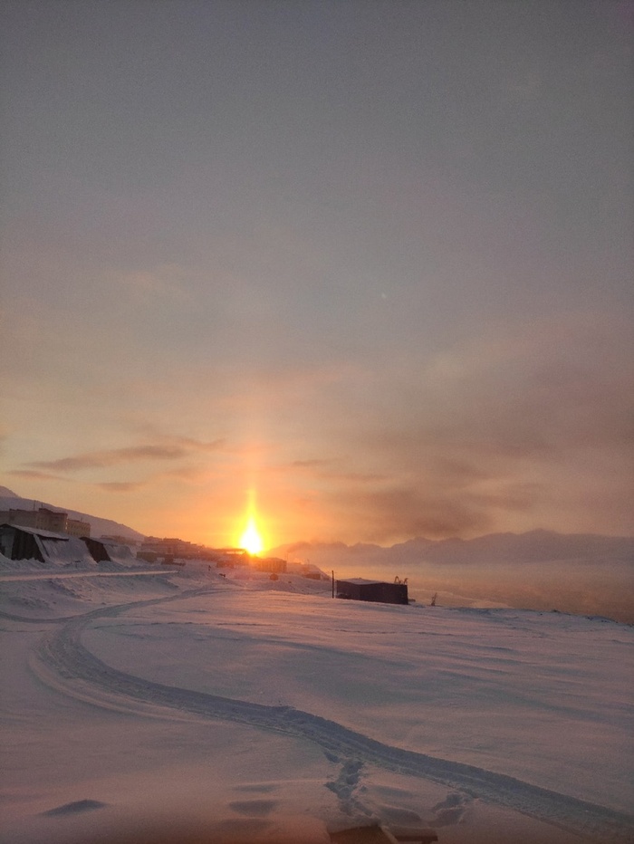 23 февраля на архипелаге празднуется День солнца. Обычно, именно тогда оно появляется из-за горизонта. И прячется обратно. На этой фотографии солнце было видно 10 минут :)