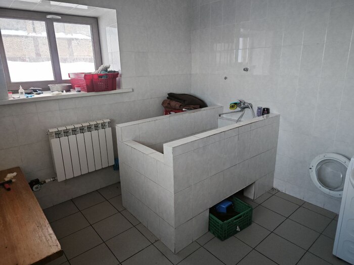 Грумерская с ванной для собак. Есть возможность с комфортом постирать собак при необходимости. Также со временем эта комната превратилась в мед.кабинет, т.к. она ближайшая ко входу, там удобный стол, на который легко закинуть собаку и обработать раны.