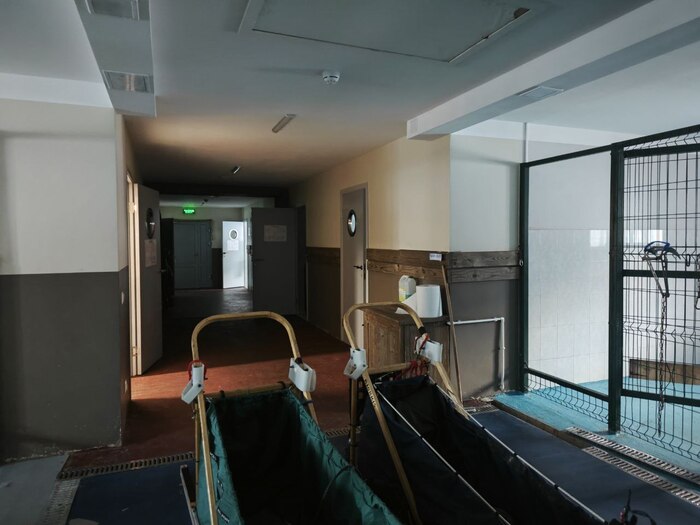 Несколько комнат, каждая со своей ролью. В коридоре также расположились вольеры, куда можно забирать собак в непогоду или "на больничный". Отдельно также есть и карантинная комната с отдельным выходом на улицу, на случай каких-то инфекционных заболеваний.