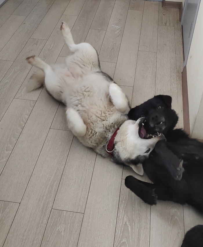 Вчера было всего +3, для нас отличная погода, но собакам уже было жарко.