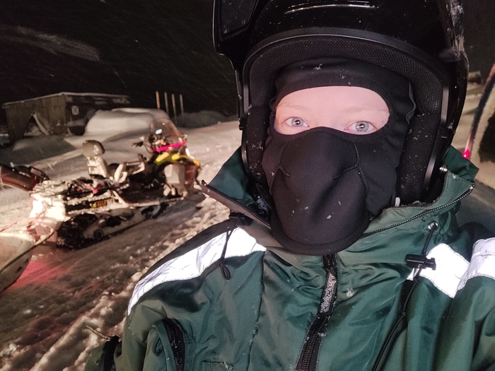 Возвращаюсь, готовлю еду собакам. Смешиваем фарш, сухой корм и воду. По итогу получается 8 вёдер по 8-11 литров. Раскармливаю собак и бегу домой. Время 5 вечера, а в 6 часов уже нужно быть в гараже. Сегодня мы с командой гидов гоним снегоходы с соседний город Лонгйир.