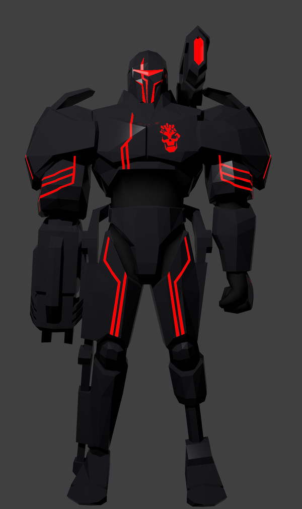 А вот, собственно, модель, на основе которой я сделал изображения. И да, я знаю про такую вещь, как "smoth shading", просто персонаж и должен быть угловатым, а под данным эффектом он уже выглядит не очень. А почему пушка скачет с одного плеча на другое? даже для меня это осталось тайной.