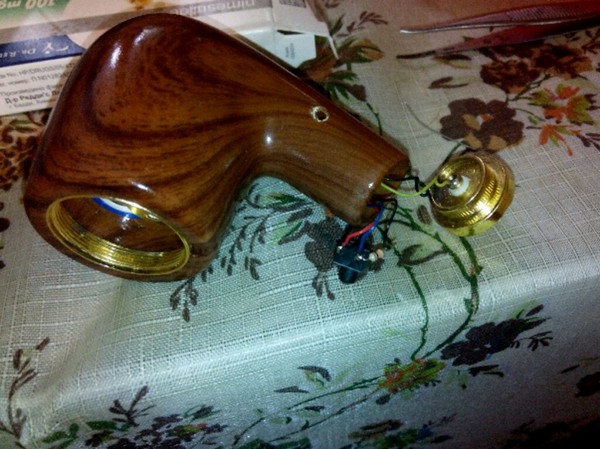 Зарядку выдрал из допзарядного запасной телефонной батареи. Остальное не вижу смысла рассказывать, все видно на фото. И ведь хорошо работает, гад!