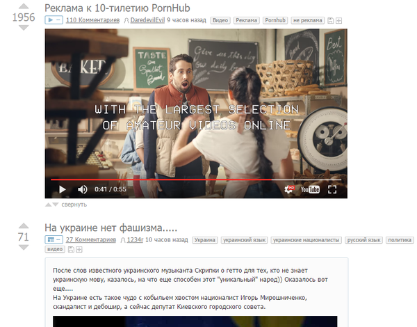 Как здесь видно, у меня стоит в игноре тег "Украина".