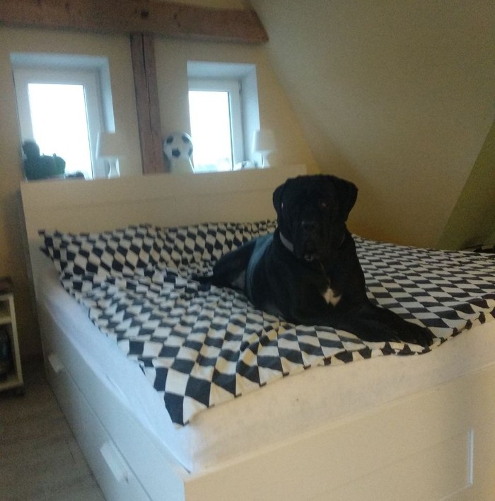 Поехали на смотрины и в процессе разговора с волонтёрами у меня волосы на жопе зашевелились. Породистую Кане Корсу отвезли в лес, привязали и оставили умирать. Что двигало теми, с позволения сказать, людьми я не смогу понять никогда.