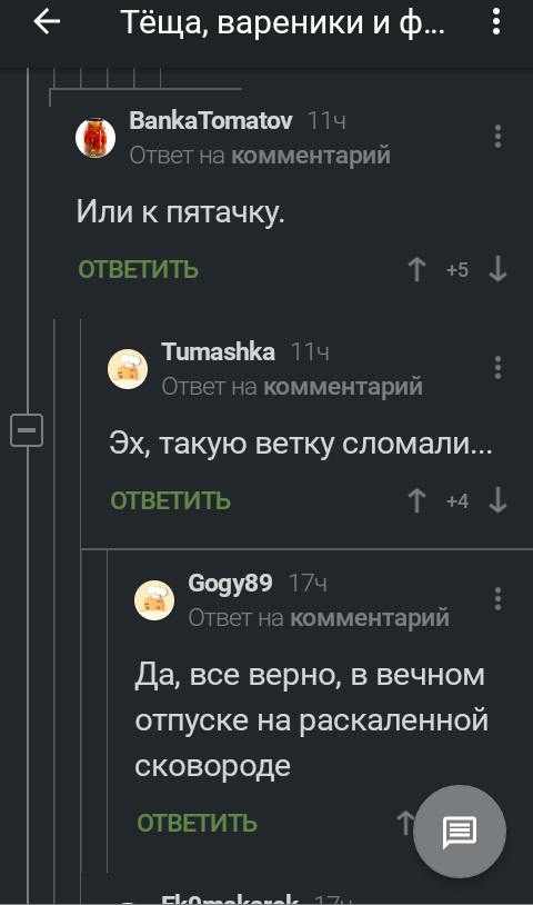 20 witchern11 Комментарии 6 лет назад Ссылка на пост Тёща, вареники и фарфор#comment_150779915 Показать полностью 3 Комментарии Скриншот Черный юмор Юмор Длиннопост