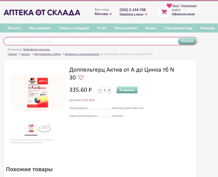 Заказываю я в аптеке от склада, т.к. там обычно дешевле, да и идти мне не далеко. Захожу на сайт, нахожу нужный товар и тут мне всплывает окно "Ваш город?"(Москва), наживаю "Нет".
