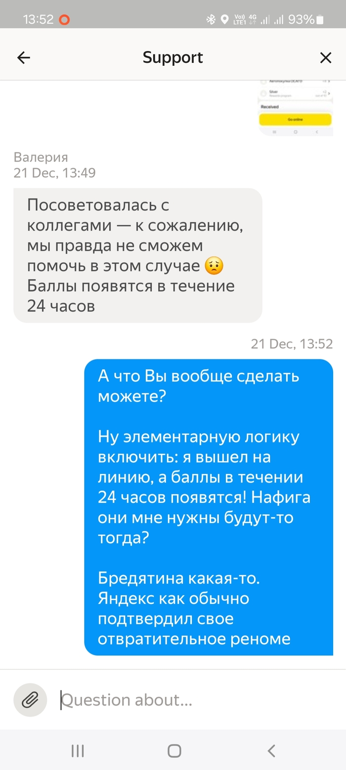 Диалог с поддержкой после того, как я на линии уже порядка 5 часов: