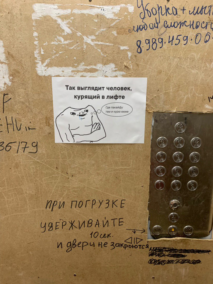 После переезда на новую квартиру, время от времени нельзя было зайти в лифт, так как там сильно воняло сигаретами. Видимо какой-то жилец считает, что курить в лифте это нормально.