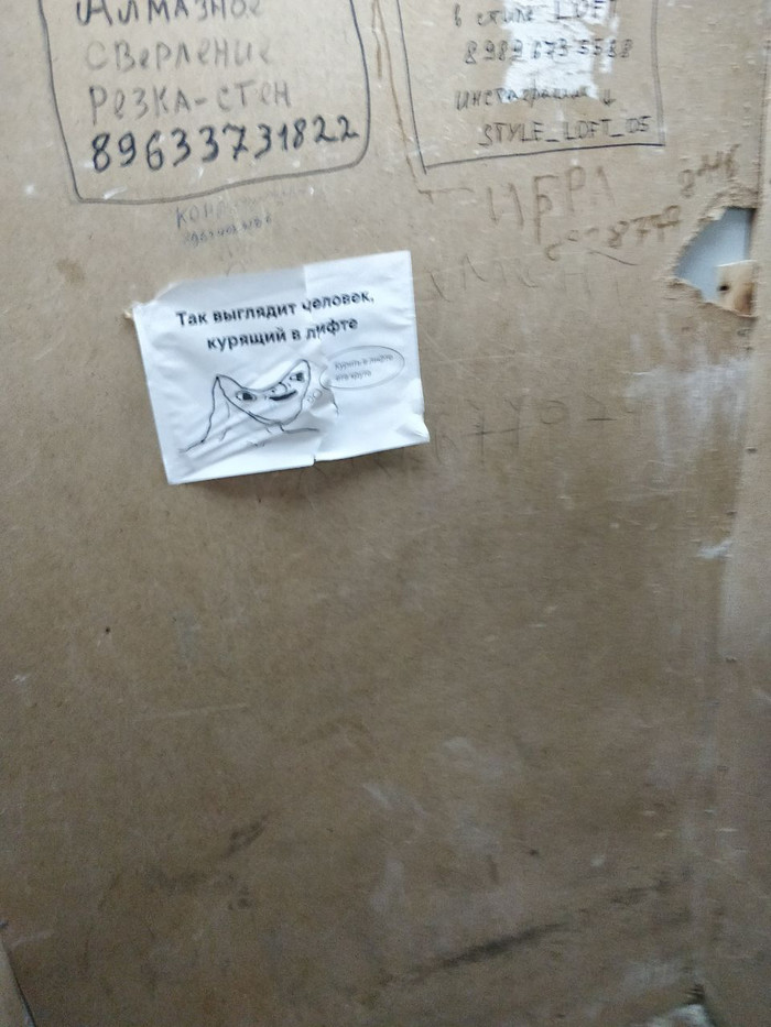 Но, видимо, индивиду, курящему в лифте, это не понравилось, так как в тот же день они были порваны: