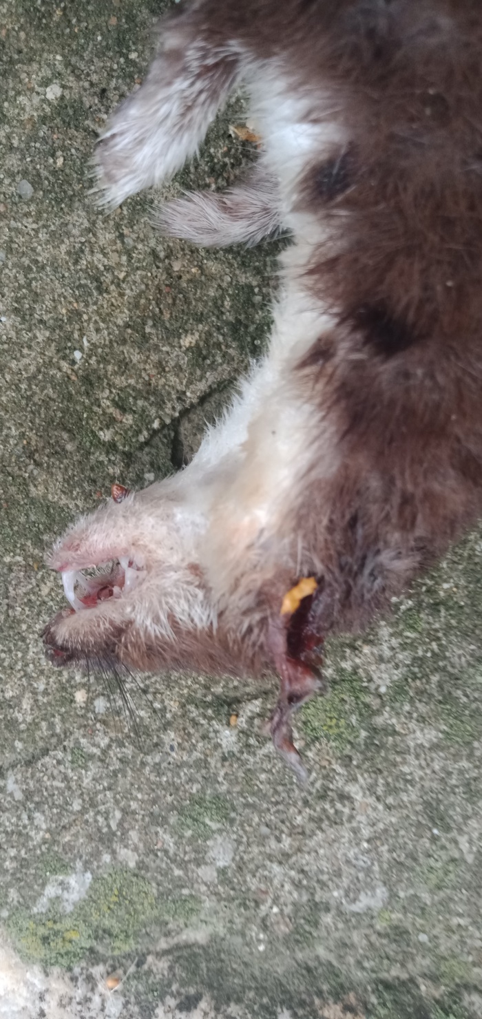 Пока с ним болтали на улице, его кошка принесла ЭТО и отрапортовалась, мол, вот я какая охотница, не зря молоко пью и мясо ем. На тебе, хозяин, на шубу зверя дикого.