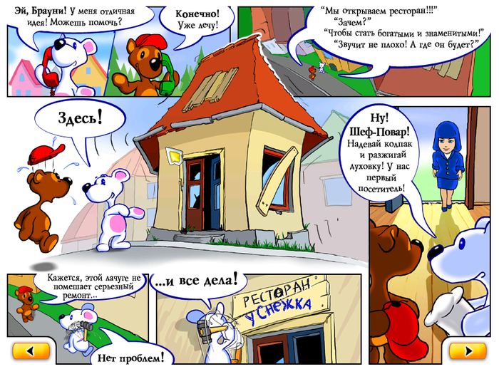 Сам сюжет игры раскрывается по типу комиксов, из которых мы узнаём, что наш ГГ живёт в г.Медвединск, а сам Снежок не блещет грамотностью, да и как сами разработчики, "Не плохо", ага.