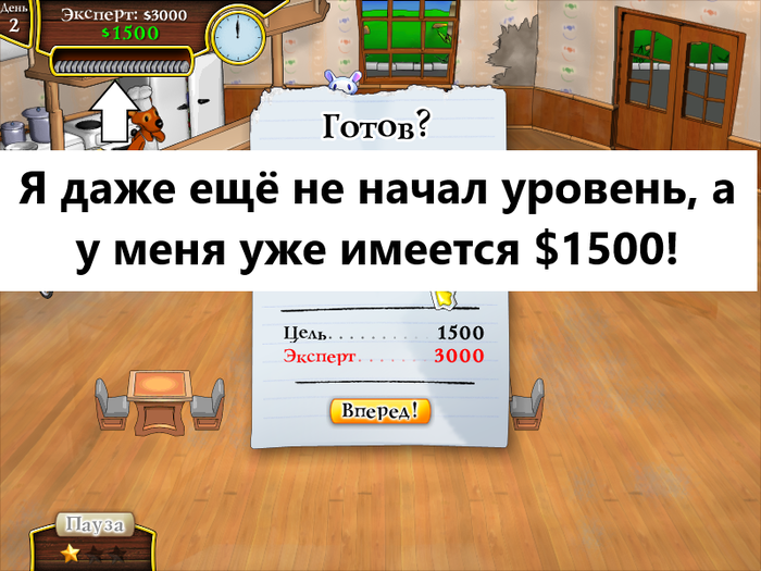 "Снежок. Обеденный переполох" - Ответ Российских разработчиков Diner Dash'у. Игра датированная 2011 годом. Немного поиграв и найдя пару интересных моментов я решил ими поделиться с вами. Итак, пост будет достаточно длинный, но интересный и с картинками, поехали.