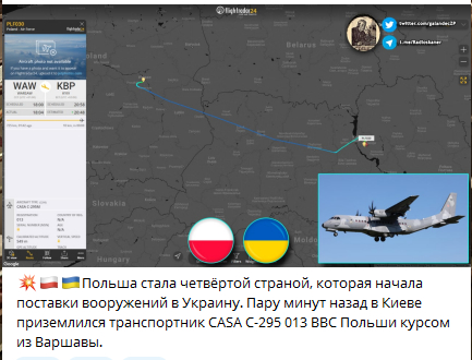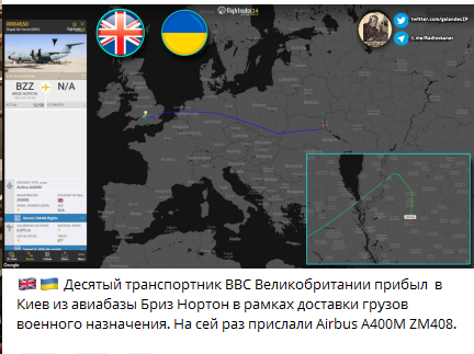 3) В/на Украину уже больше месяца летают самолеты военно-транспортной и гражданской авиации США, Великобритании, Польши: