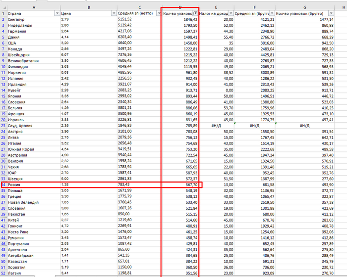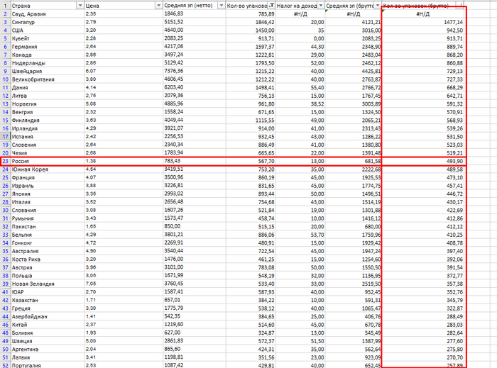 К сожалению, не по всем странам есть данные по ЗП, так что некоторые придется отбросить(