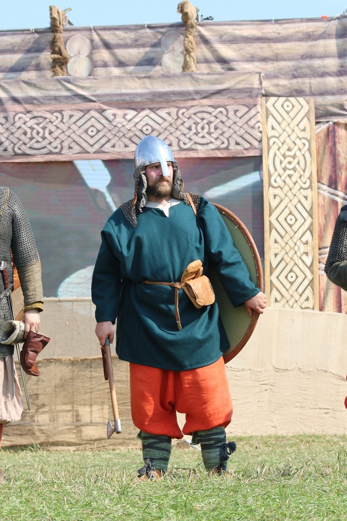 Как-то меня посетила интересная мысль, что отращивание задницы в рабочем кресле до добра не доведет. И стал я искать занятие по душе да чтоб поактивнее. Спортзал быстро надоел, а заставить себя заниматься дома не позволила лень-матушка. Но тут на радость моему внутреннему дитятку меня зазвали в секцию по СМБ(современный мечевой бой). Пару первых занятий с восторгом крутил восьмерки 4х килограммовой хреновиной, непонятно каким умельцем окрещенной мечом. А когда поставили в спарринг на тямбарах, да с плюшевым щитом, радости вообще не было предела. Но эйфория продлилась недолго, лупцуя людей плюшевым мечом появилось ощущение, что чего-то не хватает, как-то все по-детски без нужного азарта. И тут добрые люди посоветовали найти местных реконструкторов. Пошастав по просторам сети нашел местный клуб и подал заявку на вступление. В планах уже представлял, как сплету свою кольчугу, возьму сверкающий меч и пойду крошить врагов. Щщщаз, разогнался, на первом приветственном занятии на меня напялили шлем, дали в руки щит с топором и отметелили так, что ноги были синими неделю. Махать настоящим щитом и топором оказалось охренеть как сложнее, чем плюшевыми аналогами. Но это дало мне нехилый толчок, я хочу биться с ними наравне, а не слушать гул в ушах после очередного попадания по каске. Так начался мой путь в славные викинги. Не пропуская ни одной тренировки, получая удар за ударом, учился работать щитом, правильно двигаться и работать на любом оружии, которое дадут. Через месяц занятий начался сбор моего первого, хоть и минимального набора юного викинга. Шить я не умею, но тут меня спасла волшебная фраза "дорогая, я хочу быть викингом!" И через пару недель комплект гражданской одежды был готов.