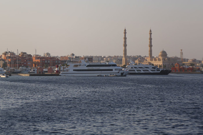 2. Вид с судна, Хургадинская мечеть и порт. Там где-то еще порт-Марина, с левой стороны где яхты.