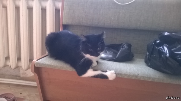 Котя появилась у меня давно. Муж относительно недавно. Я доблестно убираю говно Коти на протяжении уже 13 лет. Муж у меня самостоятельный.