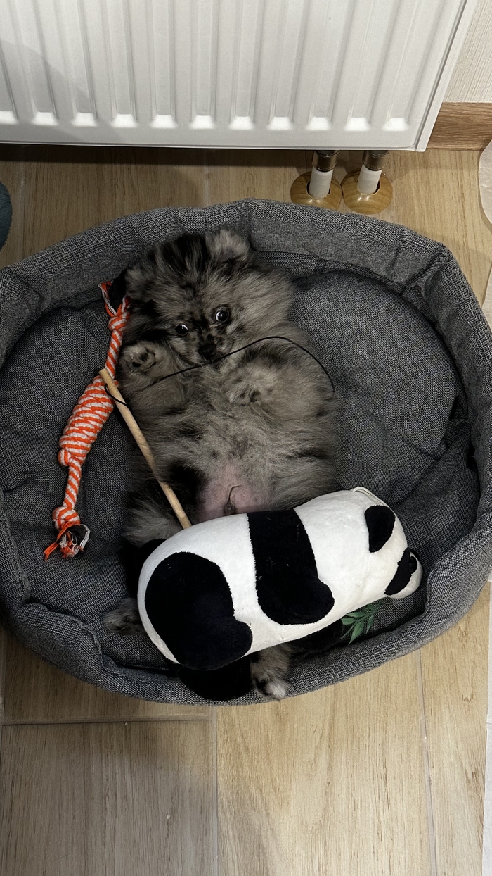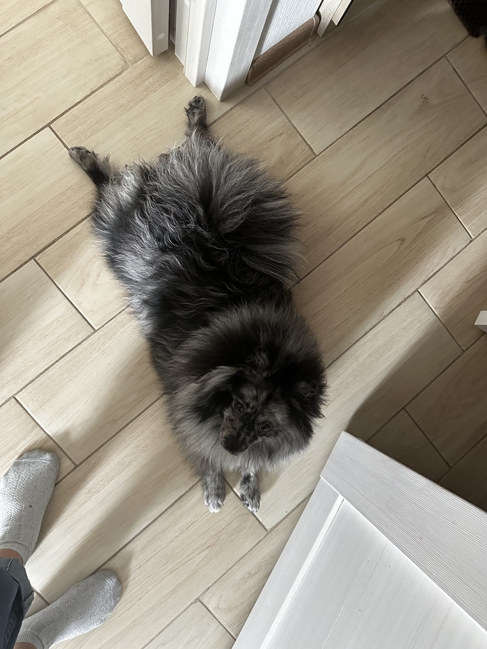 Он оказался без документов(только с вет паспортом). Во-первых, такой окрас признается браком среди шпицев, а во-вторых это оказалась случайная случка (его папа стал мужчиной раньше, чем заводчица это успела отследить 😅)