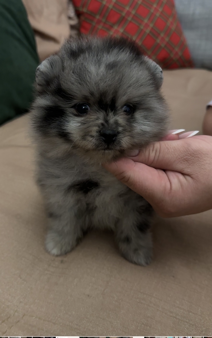 Это скрин из видео, где я приехала с ним знакомиться - тут ему 1,5 месяца, заводчица отдавала его только после 2,5. Малыш окраса мерле- голубой мрамор 😍