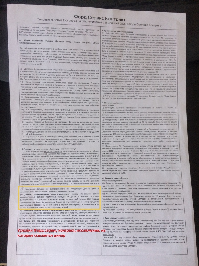 Автомобиль Форд Фокус, 2013 года, куплен 24.04.2013, основная гарантия 3 года (закончилась 24.04.2016) + гарантия Форд Сервис Контракт (ФСК) до 5 лет, закончилась 24.04.2018.