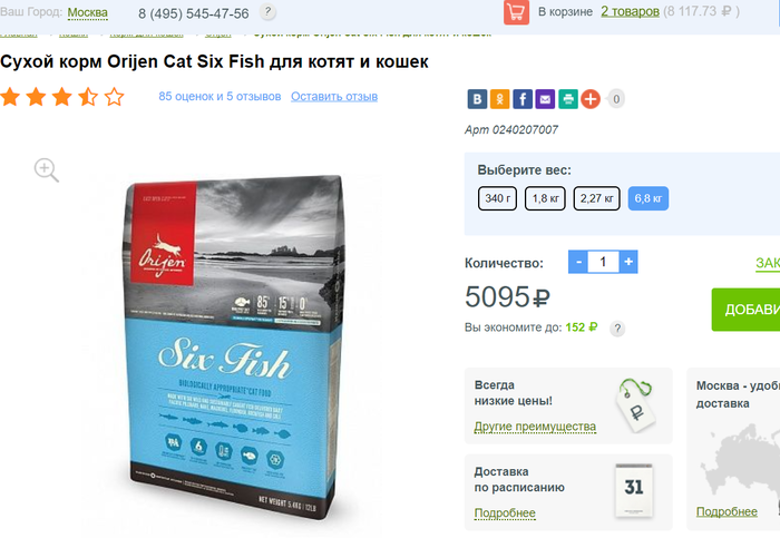 Не довелось мне стать клиентом данного интернет-магазина)) Будьте осторожны, думаю с другими кормами такая же ситуация.