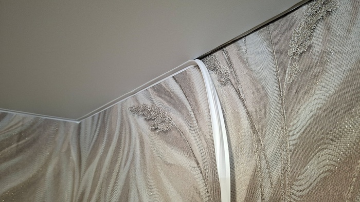 Комплекты для самостоятельного монтажа гатяжных потолков есть на любом маркетплейсе. Обычно в него входит всё нужное: багеты, полотно, гарпун, саморезы с дюбелями, вставки под точечные светильники и под люстру. И даже перчатки тряпочные.