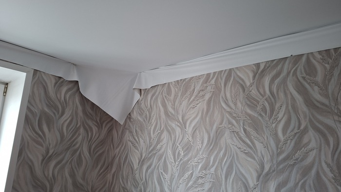 Подобным способом натянул уже второй потолок. Впереди еще один.