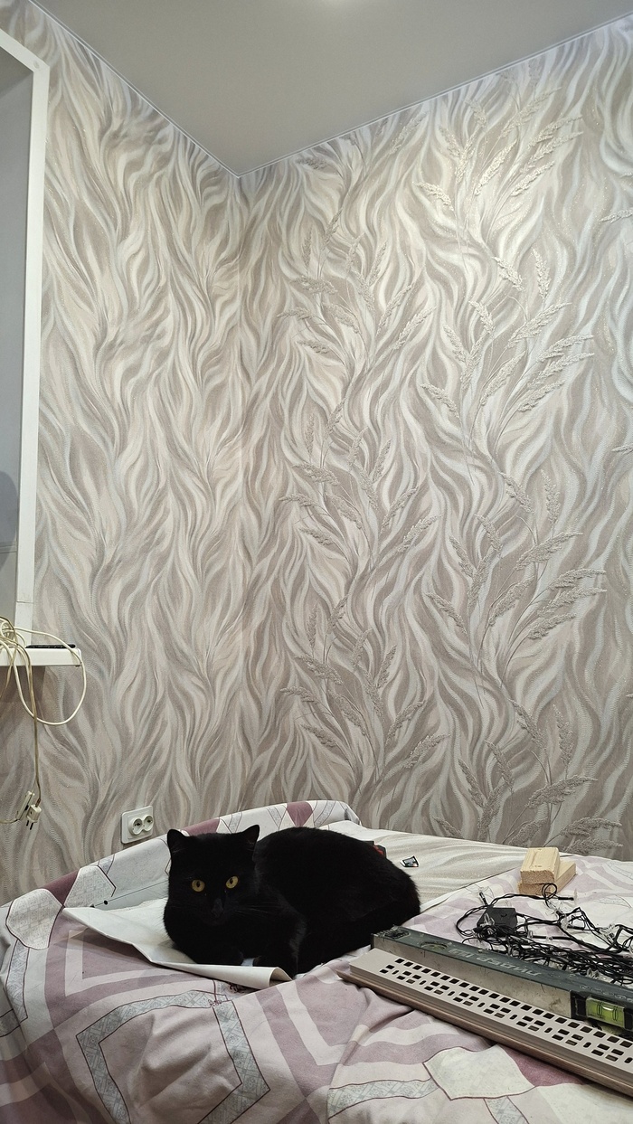 Багет в комплекте нарезан метровыми кусками и их постоянно приходится стыковать. Стыки продавец рекомендует проклеивать малярным скотчем (который тоже есть в комплекте), чтобы не повреждалось полотно и стыки в глаза не бросались.